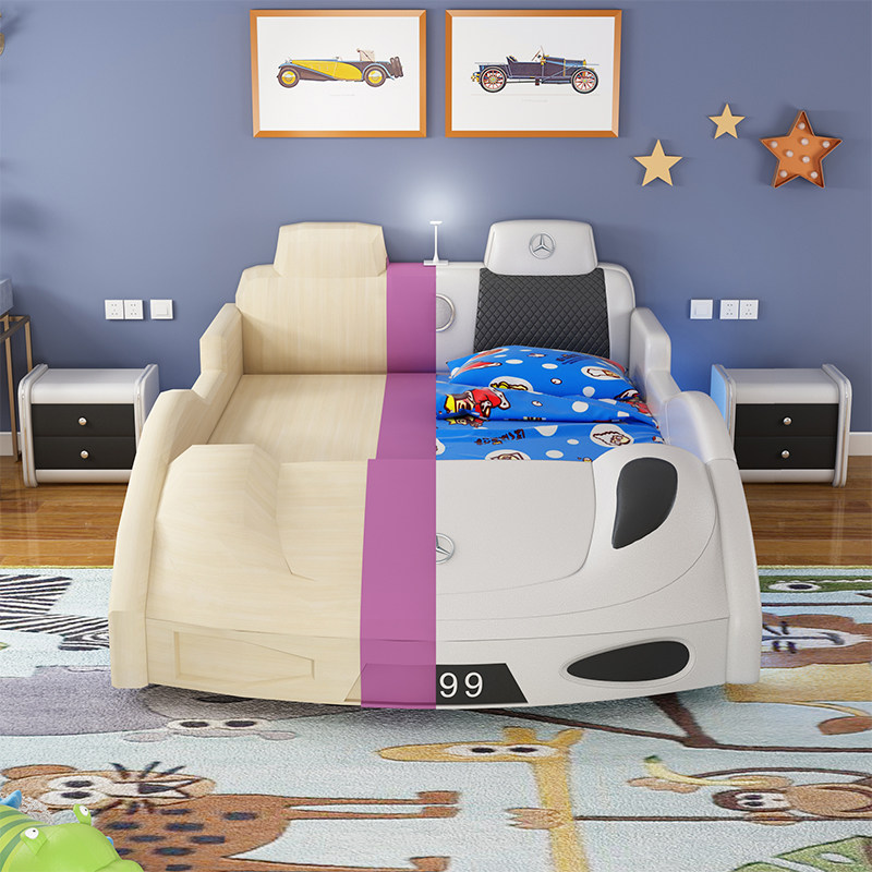 Car bed children boy bed running cartoon 1 5 meters single bed 1 2 solid wood girl multifunctional boy send mattress