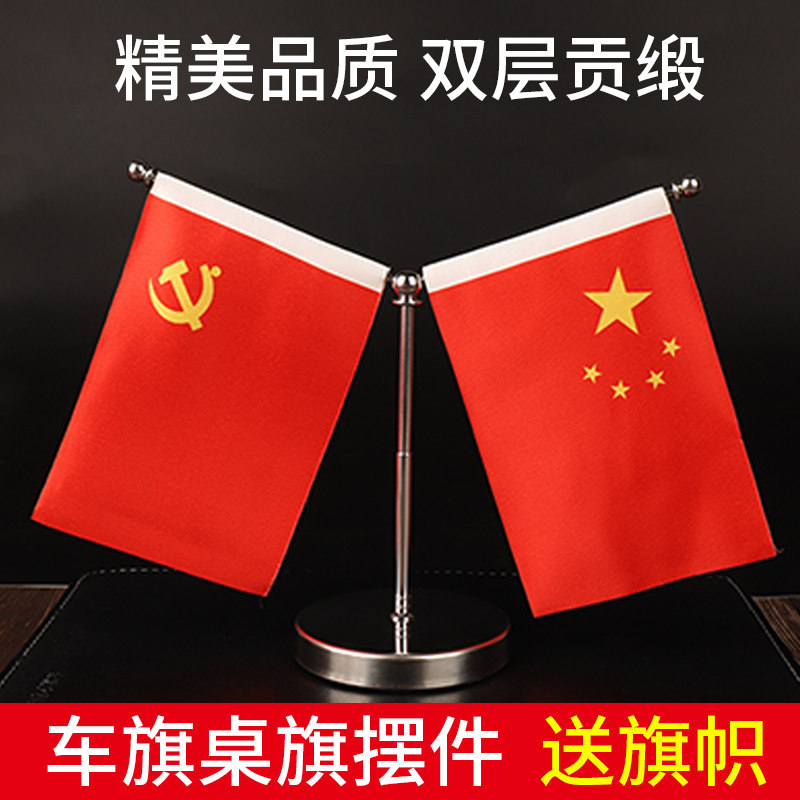 Car car flag decoration car five-star small red flag party flag desktop decoration flag double satin car center console high-grade car flag boutique stainless steel creative desk metal decoration