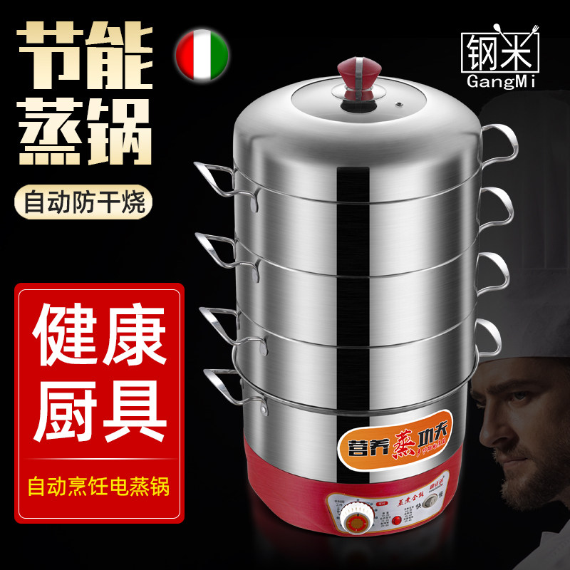 Electric steamer stainless steel household three or four multi-layer multi-function timing power-off steamer original energy-saving thickening large capacity