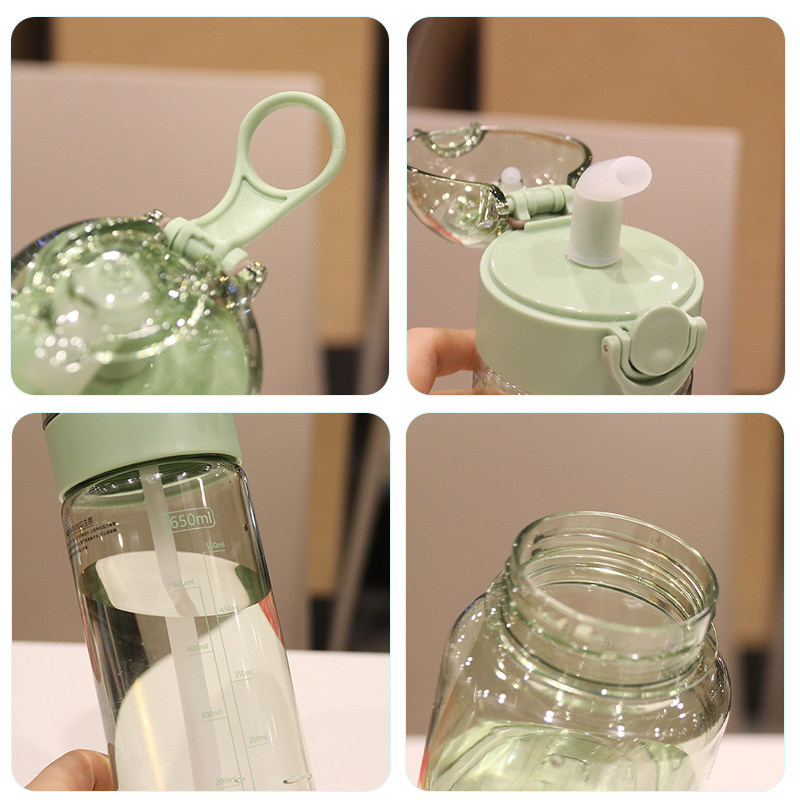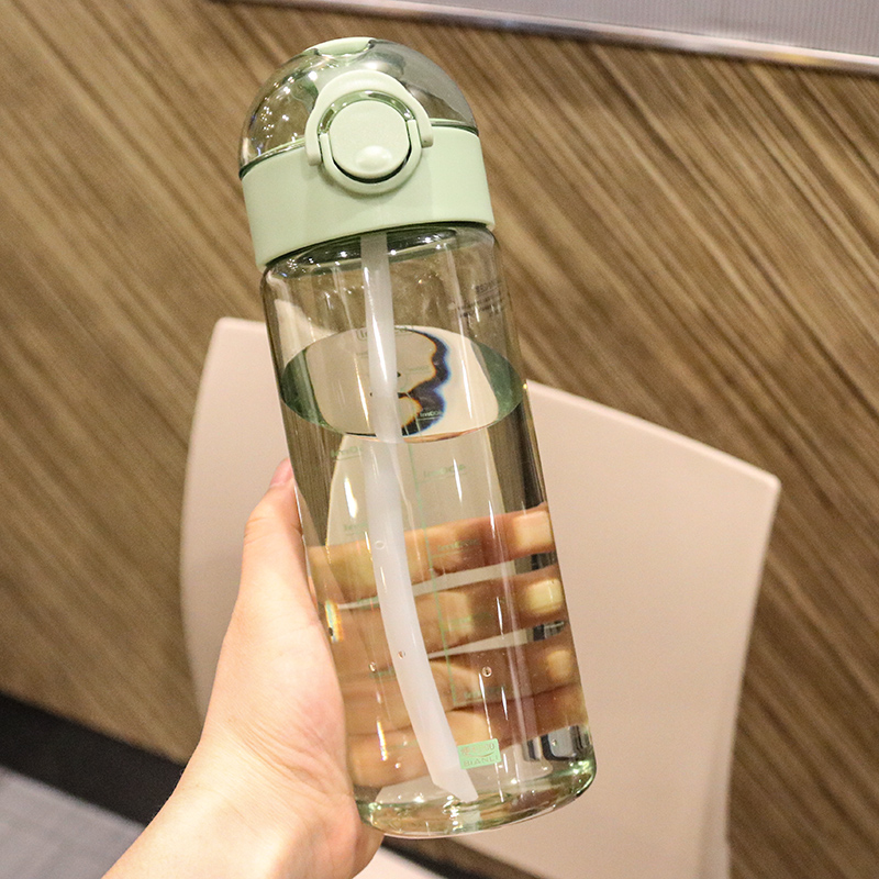 Creative simple straw cup fresh and cute large capacity plastic cup adults with scale pregnant women Maternal water cup heat-resistant