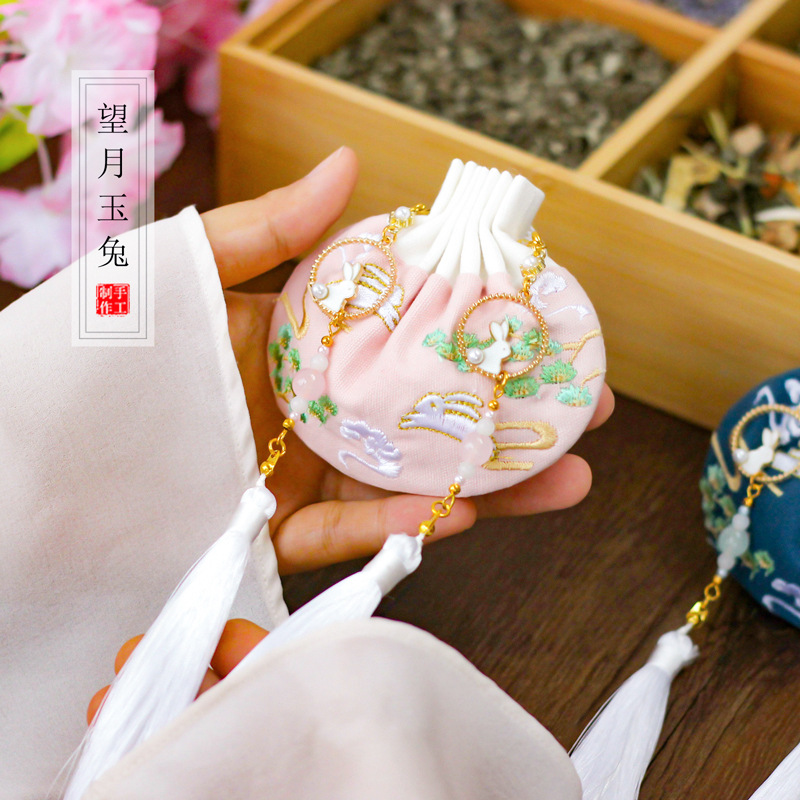 Elegant embroidery concentrated Chinese style sachet Sachet Mid-Autumn Festival empty bag Mochizuki jade rabbit ancient style Hanfu custom souvenir