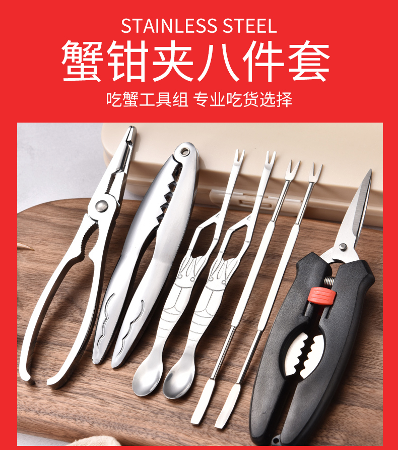 Eat crab tool three-piece set stainless steel pike crab home eat hairy crab clip crab foot crab claw crab clamp crab eight pieces