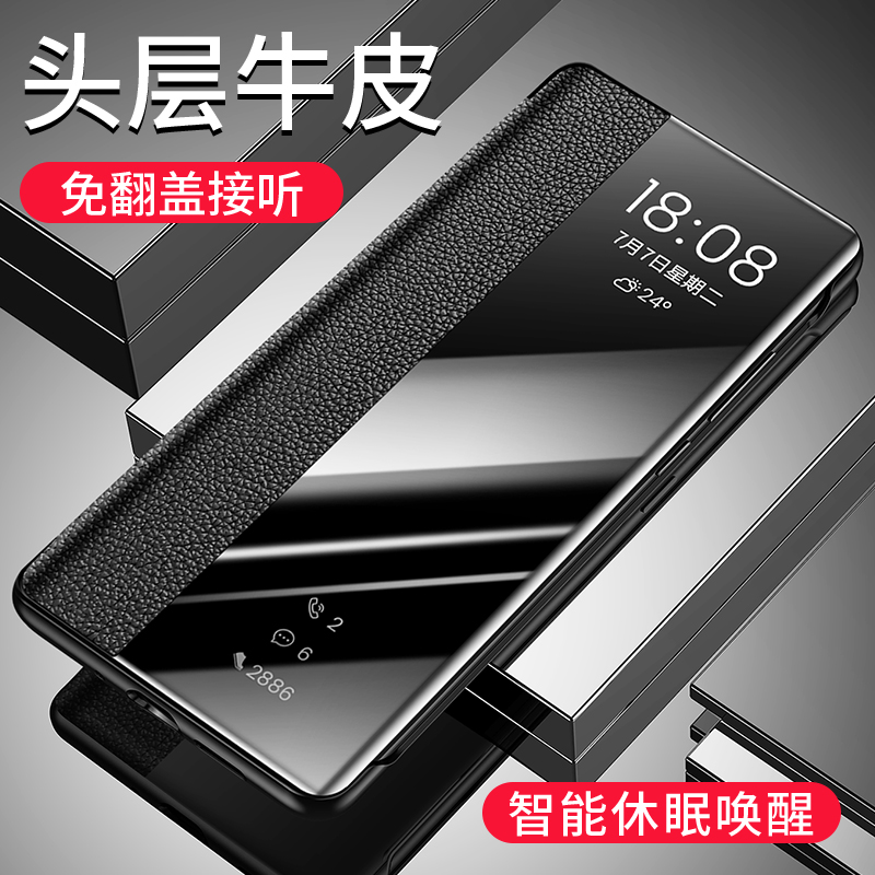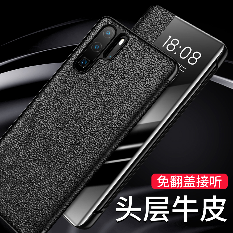 Suitable for Huawei p30pro mobile phone protection shell flip type p30 protective sheath genuine leather p30p intelligent Windows por full bag anti-fall limited edition high-end curved screen new shell ultra-thin silicone Tide Card