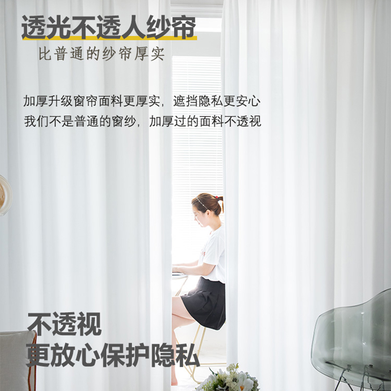 In 2021, the new white curtain is transparent and the opaque partition balcony shading window Nordic brief drift window