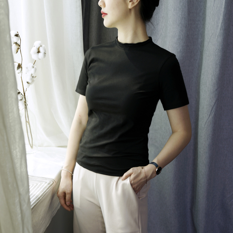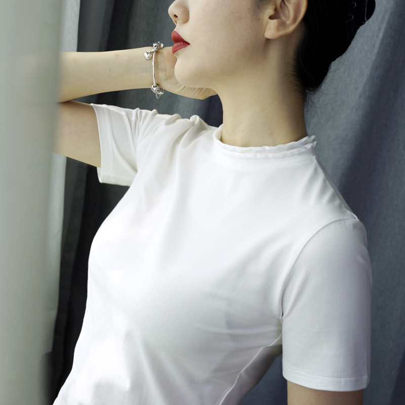 Tide - card semi - tall short - sleeved T - shirt in the summer of 2021 to make a pure cotton - ear petal thin coat