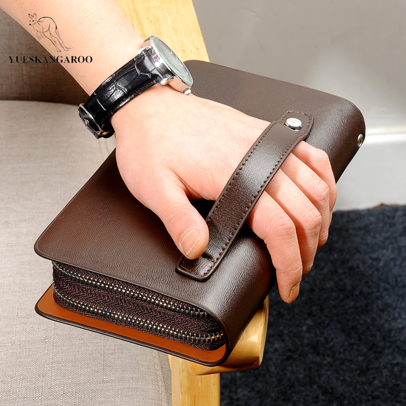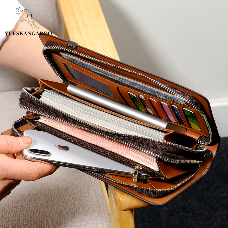 Lesen Kangaroo Long Version Wallet Men Genuine Leather Double Pull Chain Money Nip Bull Leather Handbag Boomer Hand Grab Bag Casual Hand Grip