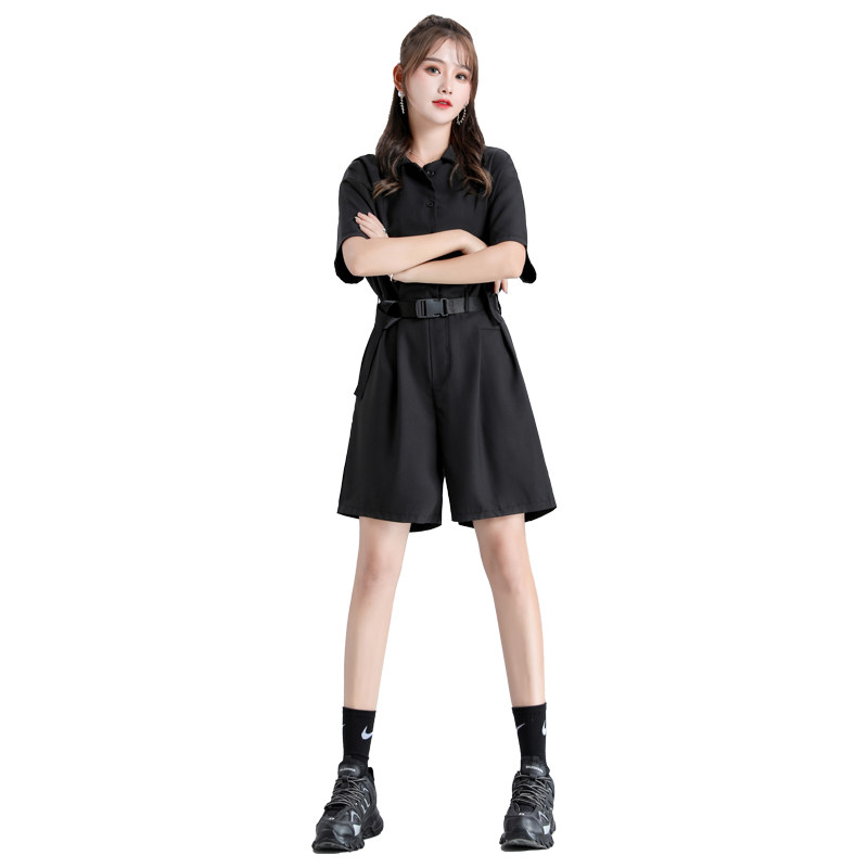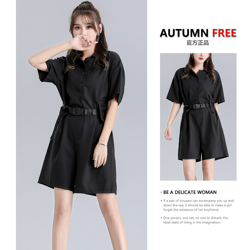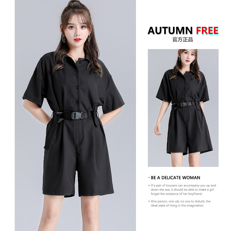 2022 new summer slim fit overalls shorts female high waist display slim loose black wide-leg ultra-fire suit