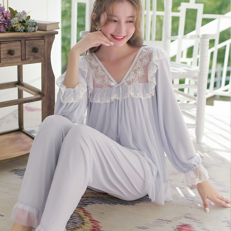 Yerle Sleepwear Woman Spring Autumn 2022 New Pure Cotton Lace Long Sleeve Suit Sweet Princess Home Conserved Winter