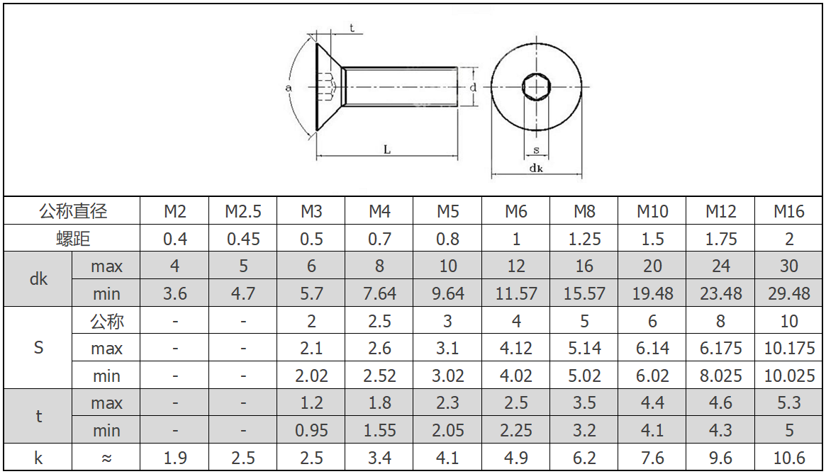 304 stainless steel flat head screw countersunk head inner hexagon screw flat cup M2M2 5M3M4M5M6M8M10M12M16