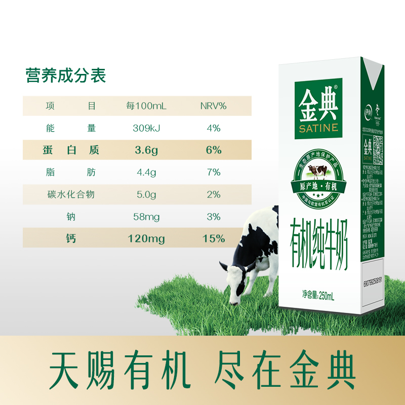 Erie Golden Classic Organic Pure Milk 250ml * 12 Boxes Nutritious Children Adults Nutrition Whole Boxes Breakfast Milk