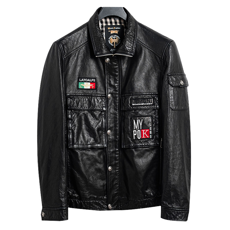 Type Male BI Preparation Autumn Winter Leather Clothing Male Dermis Sheep Leather Outer Cover New Tooling Locomotive Leather Jacket Short Korean version