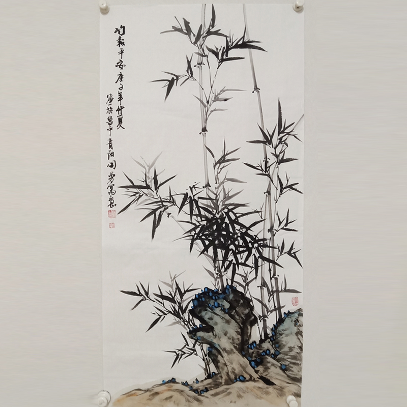 Pure hand-painted Chinese painting bamboo freehand ink painting bamboo newspaper safe decorative painting living room study porch office hanging painting