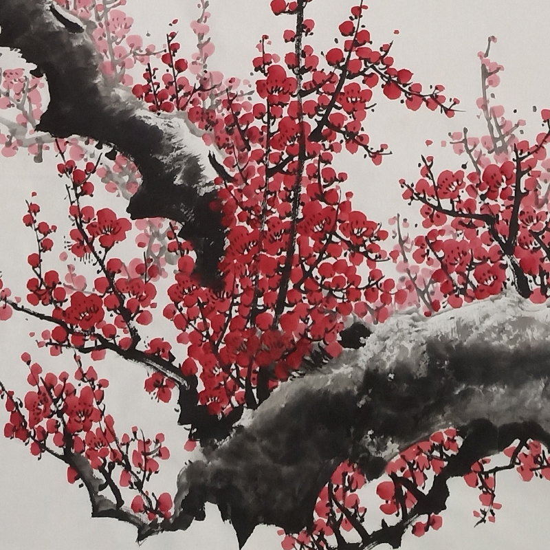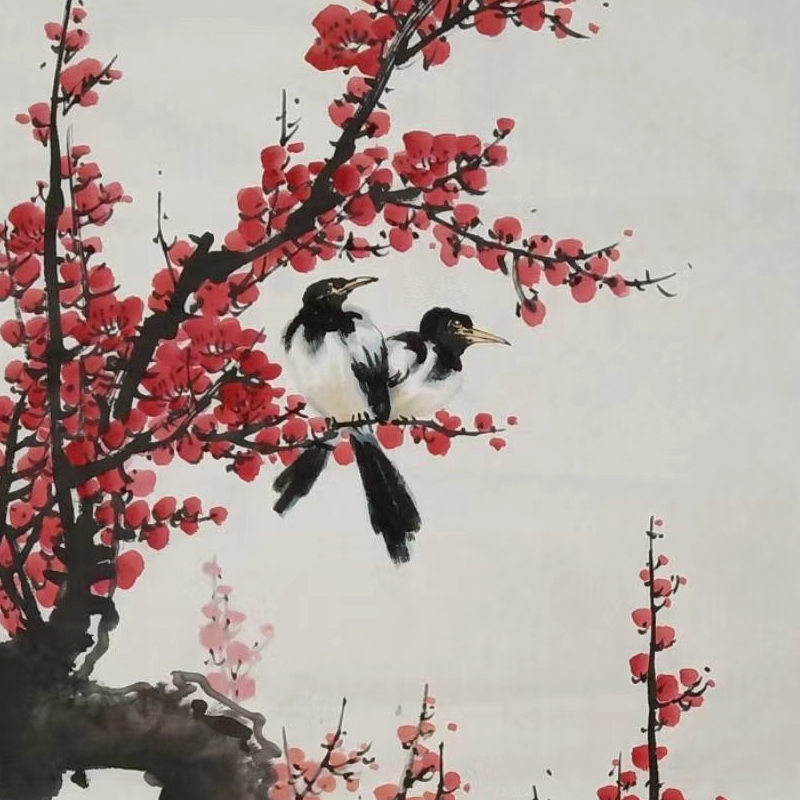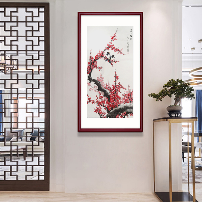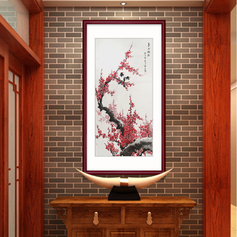 Pure hand-painted plum blossom herald spring picture living room office happy plum shoot decorative painting flowers and birds red plum porch Chinese painting hanging painting