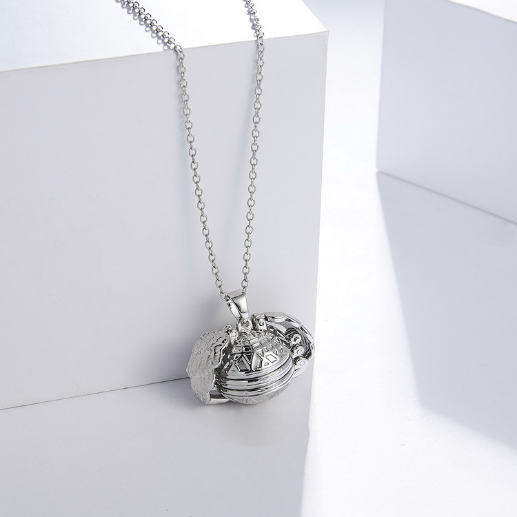 The new retro can open pendant folding multi-layer photo photo box angel wings necklace couple family gift