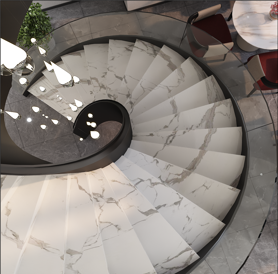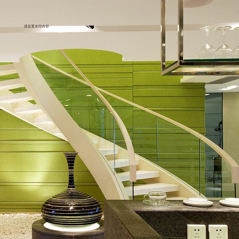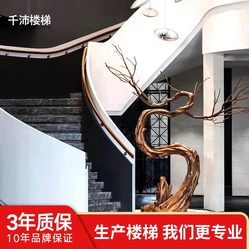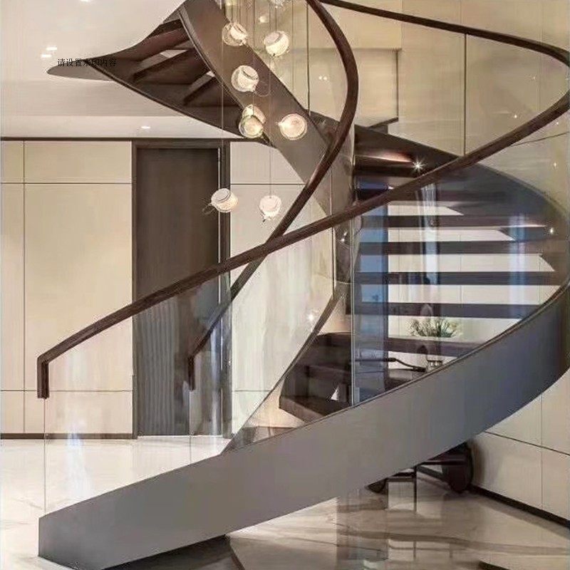 Spiral steel plate staircase modern aesthetic net red curved glass art glass staircase handrail design installation