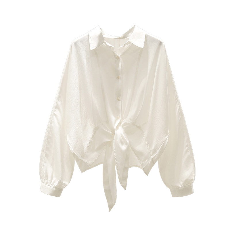 ocnltiy all-match chiffon shirt women's 2022 new loose and thin waist top tie shirt jacket