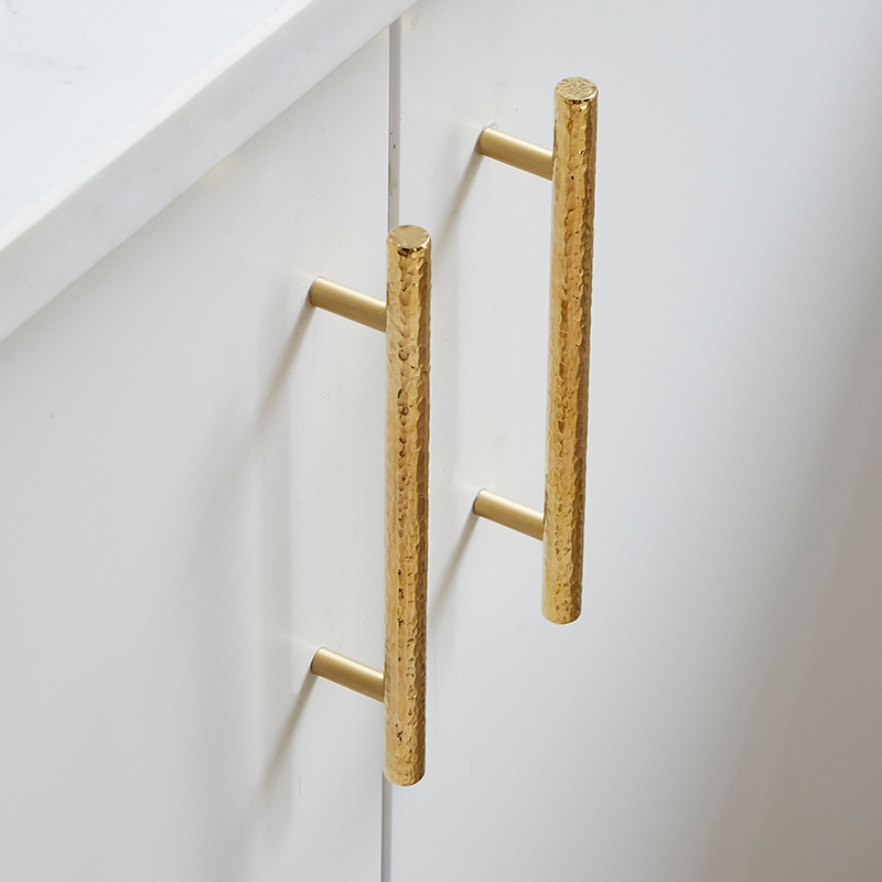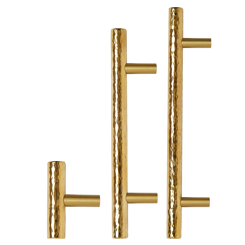 Hammered brass handle Modern simple overall cabinet drawer wardrobe door Shoe cabinet Light luxury cabinet Gold pure copper long handle