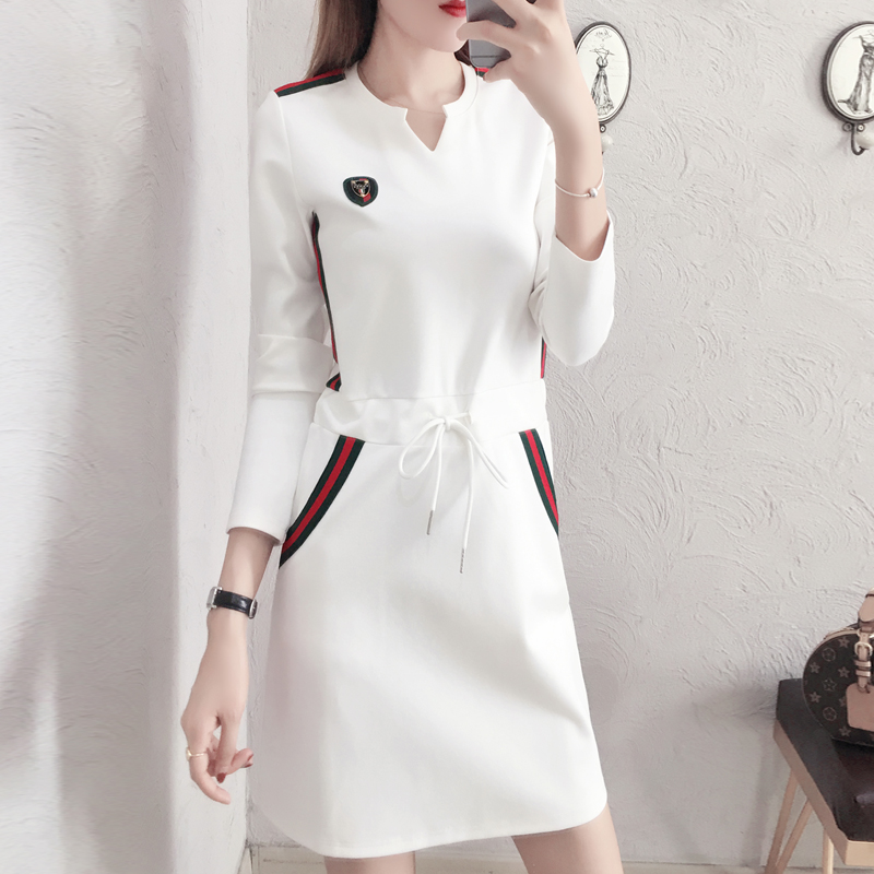 Tide cards big size women's clothes 2022 Spring collection waist display slim long sleeve foreign dress lady fat sister casual straight drum dresses