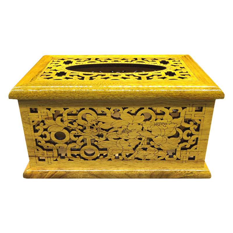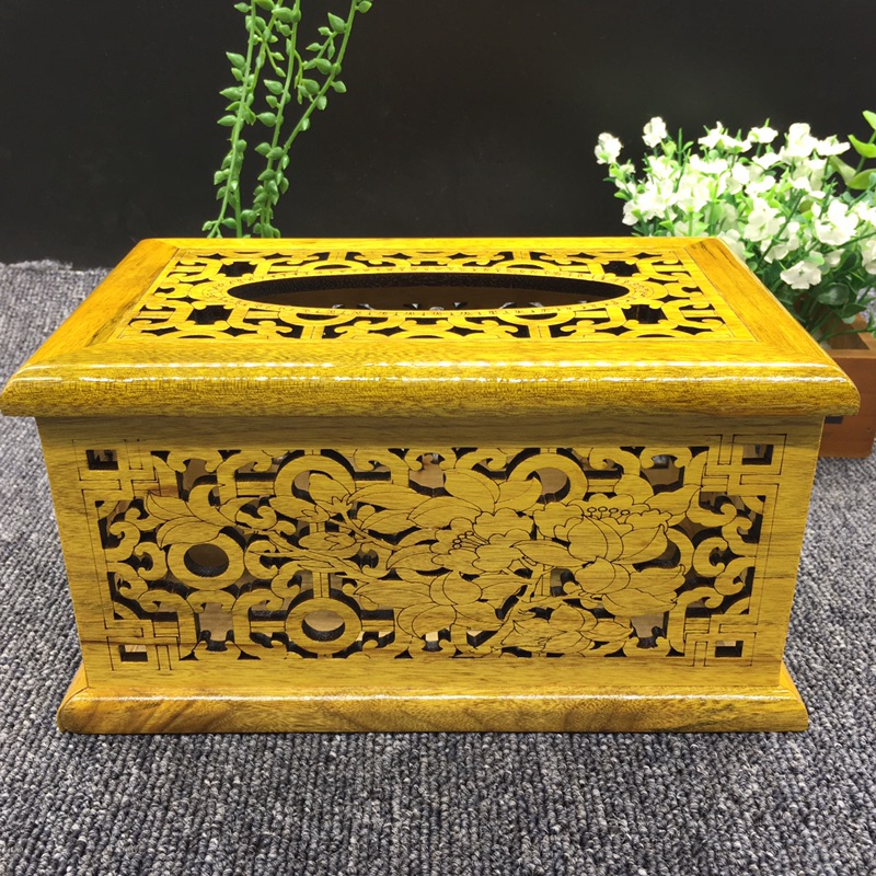 Solid wood drawing box Golden wire Nanwood Gold camphor towel box Household living room Creative napkin box