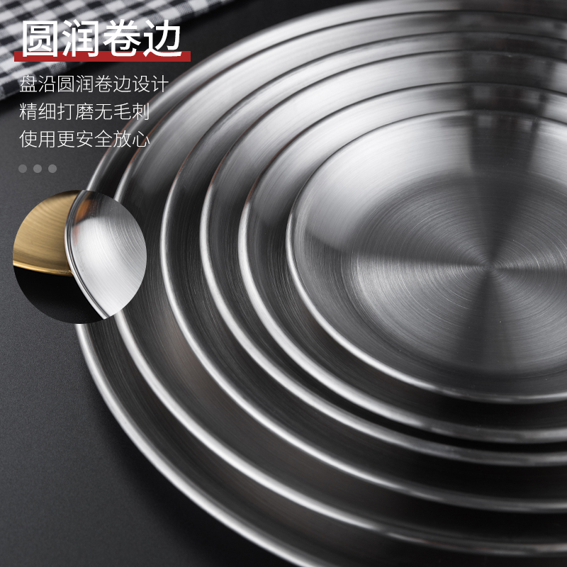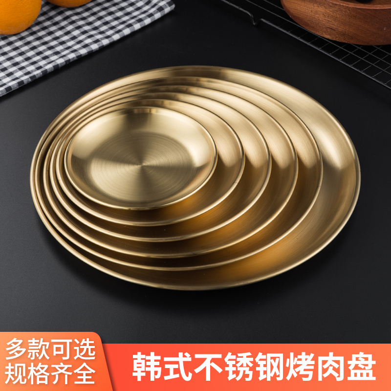 Korean stainless steel disc thickened golden fruit plate cake buffet plate restaurant tray barbecue plate hotel
