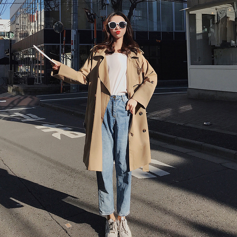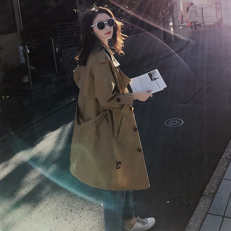 Windbreaker women's mid-length 2022 autumn and winter new Korean retro temperament slim fit and thin double-breasted khaki coat