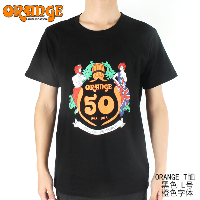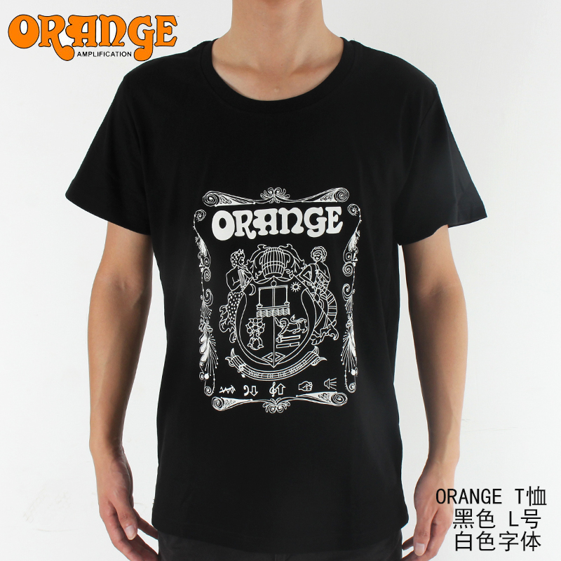 Orange T-shirt short sleeve male and female with round collar loose casual blouse black summer dress with loose summer-Taobao