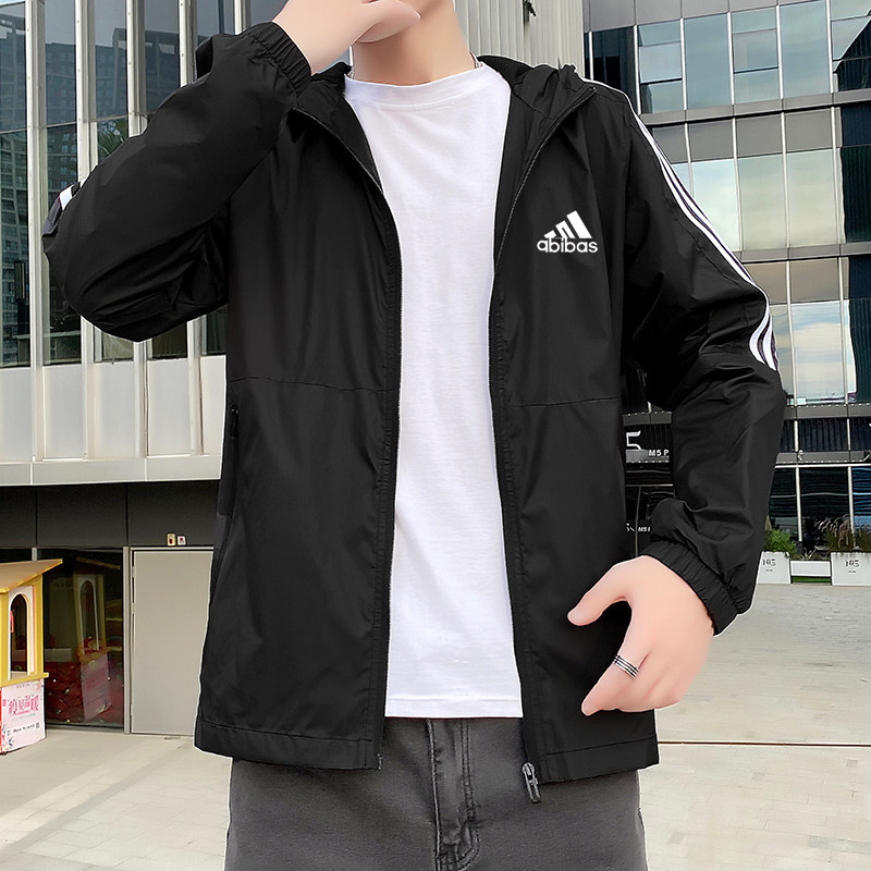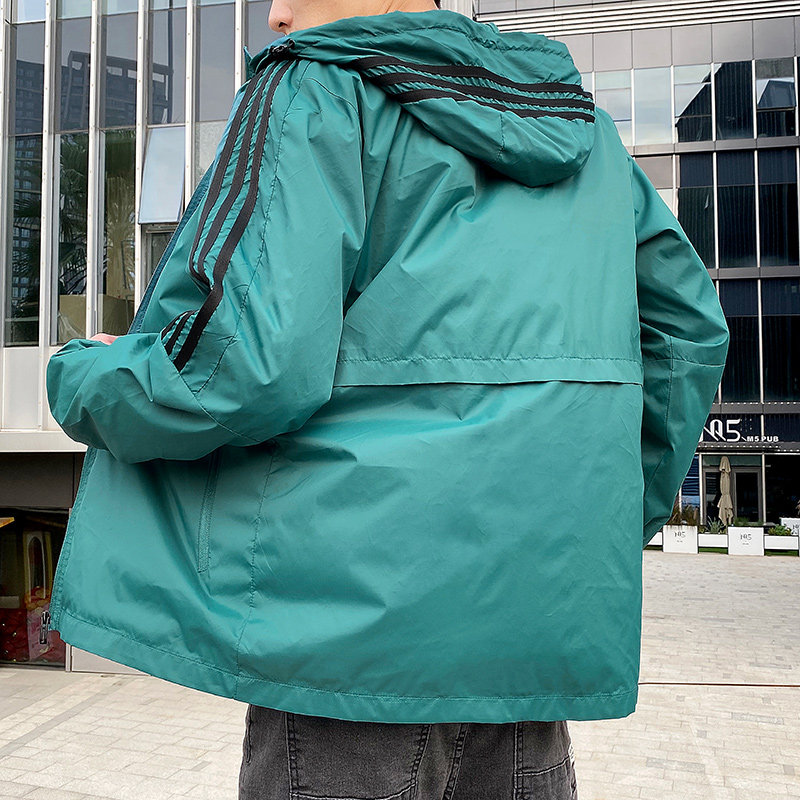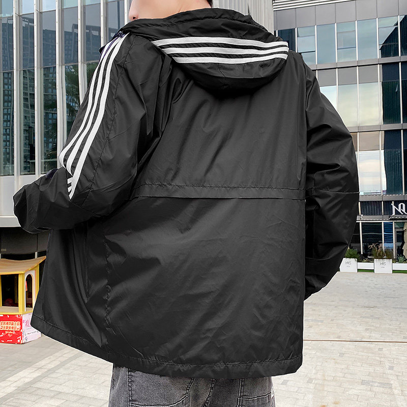 Spring and autumn new sports jacket men's classic three-bar youth jacket hooded all-match trend casual windbreaker men