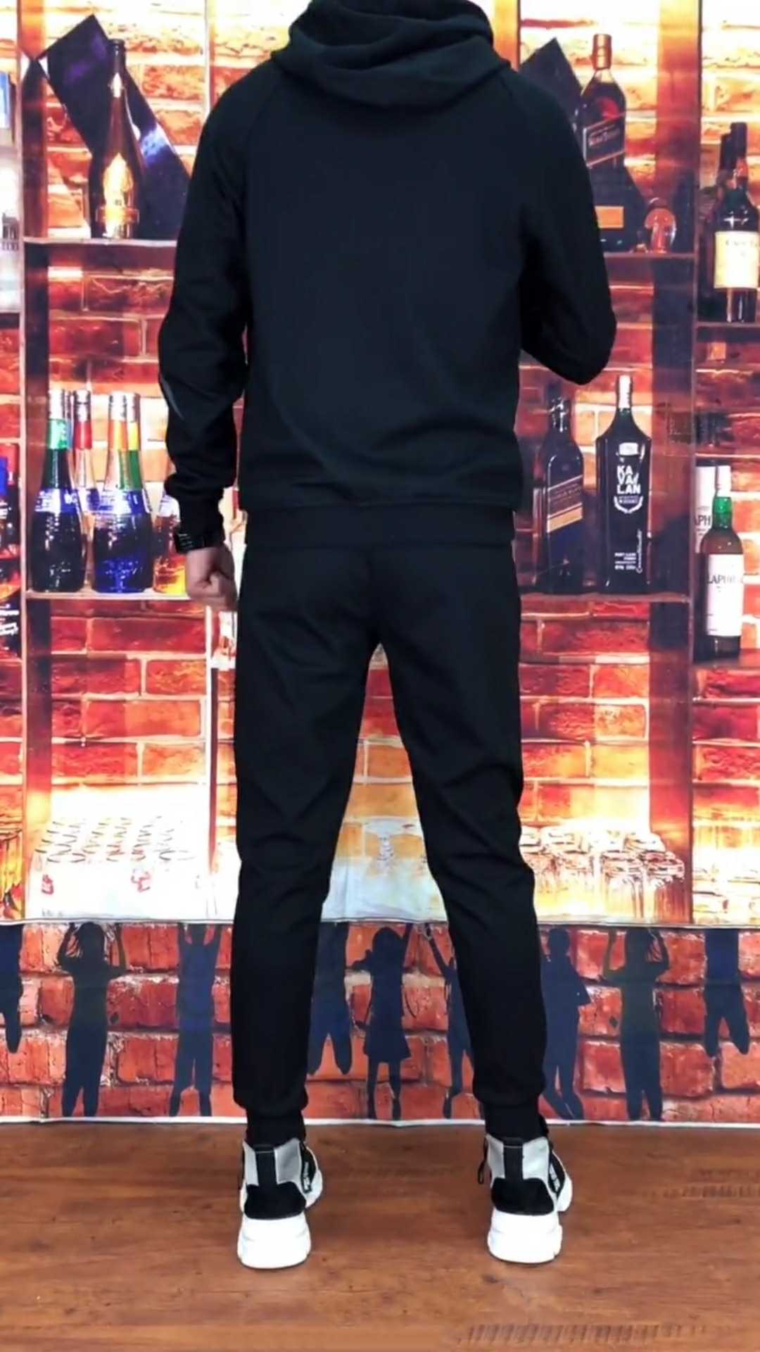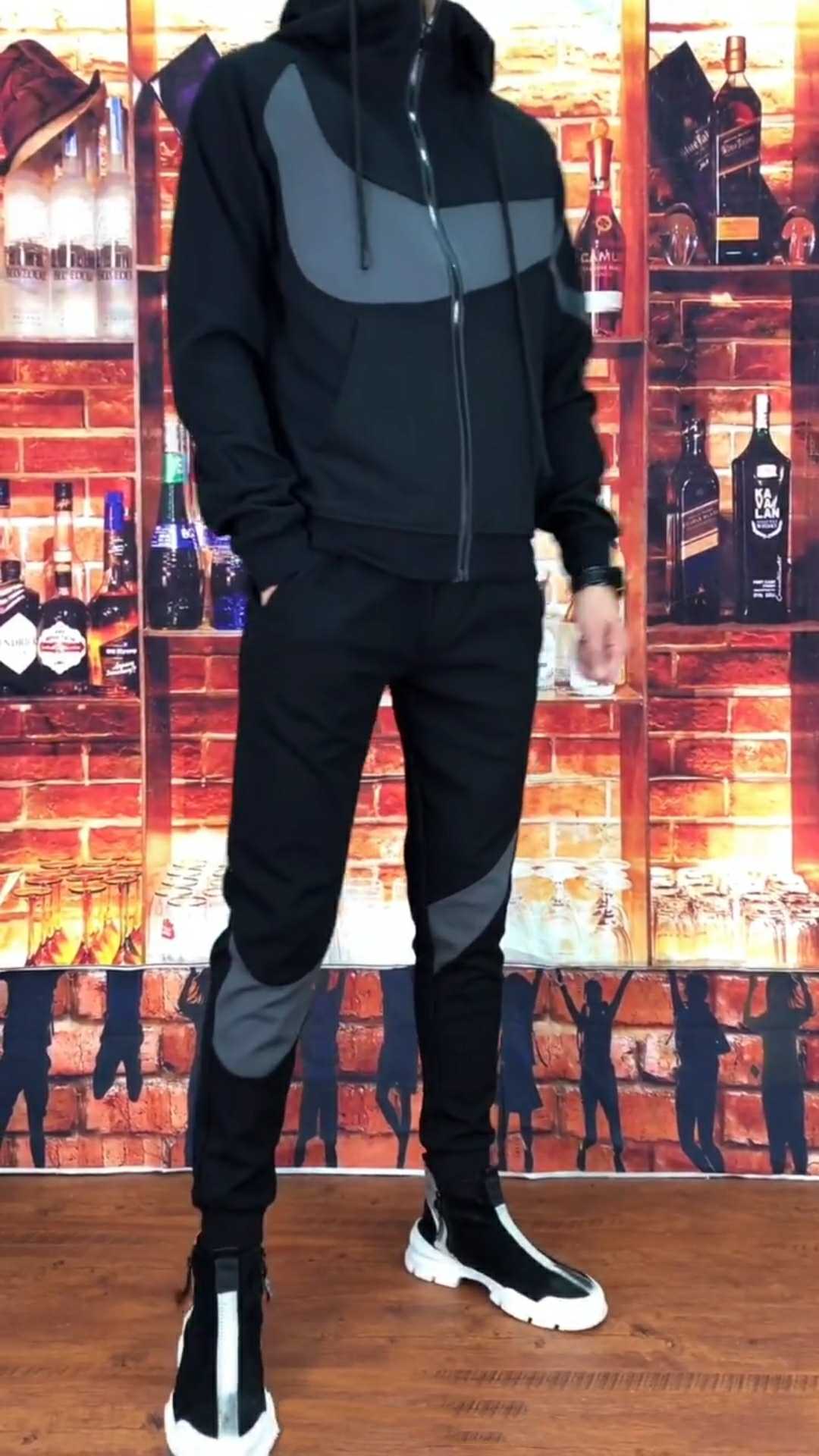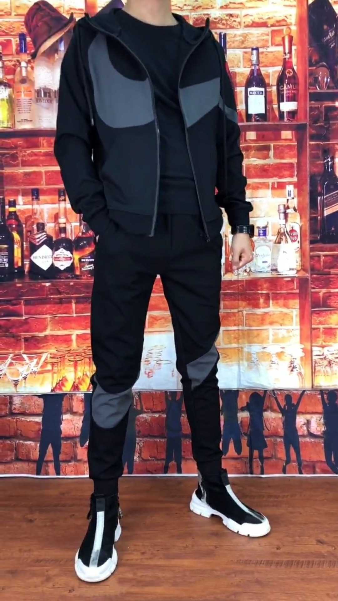 0016 Chao Men's Pavilion Two Shop Men's Hooded Big Fit Leisure Joker Sports Comfort Trend Personality Cardigan Set