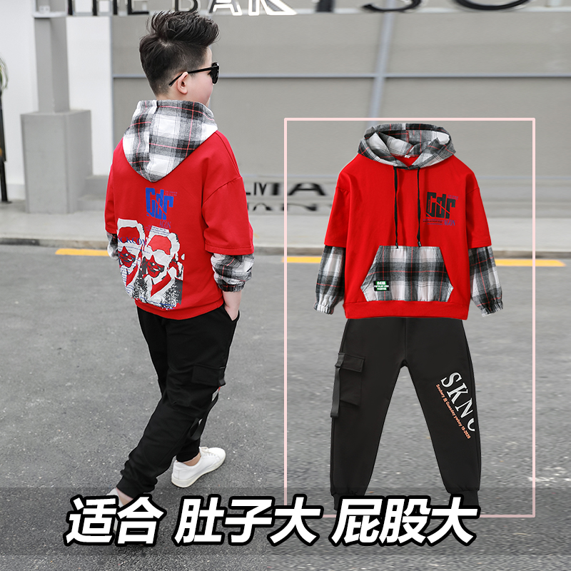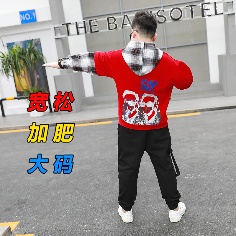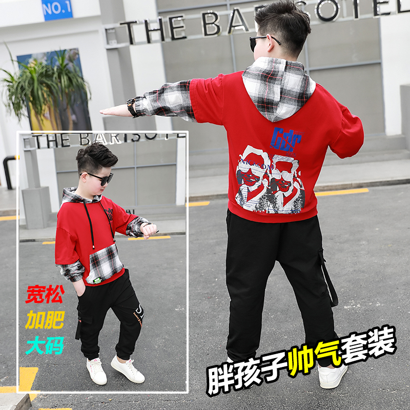 Fat Boy Clothing Boy Suit Easy Plus Fat Increase Fall 2022 New CUHK Child Long Sleeve Thick Cotton T Two Sets Tide