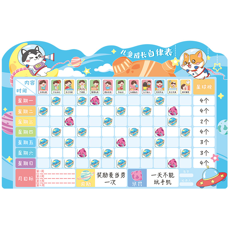 Children's learning self-discipline artifact winter vacation plan wall paste home primary school students holiday daily course schedule magnetic punch card schedule children's life good habits to develop rewards and punishments reward record table