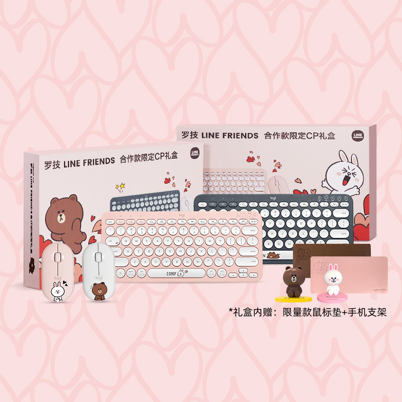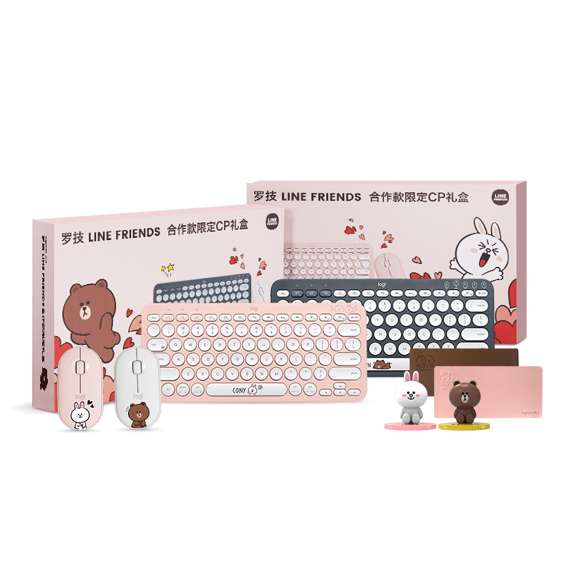 Logitech Line Friends co-brand cp gift box K380 wireless keyboard pebble bluetooth mouse set girl