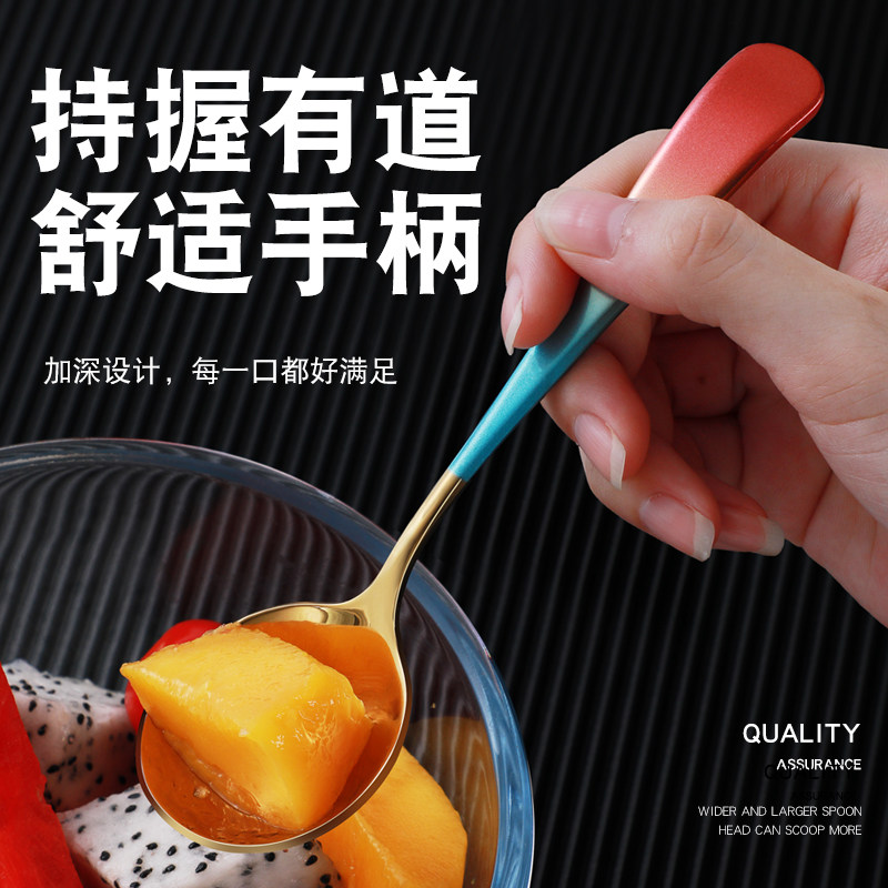304 Stainless Steel Spoon Creativity Cute Home Mesh Red Watermelon Long Handle Soup Spoon Children Eat Tablespoon Spoon Small Spoon