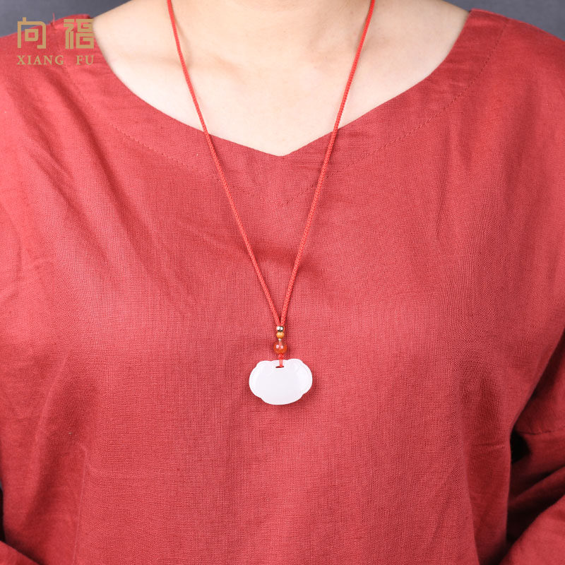 To Fu Sheep Grease Jade Green Lock Pendant and Tian Yuxiang Lock male and female adult children baby mascot long life lock