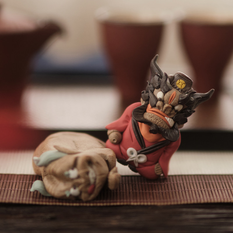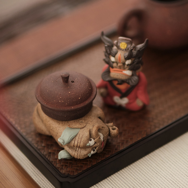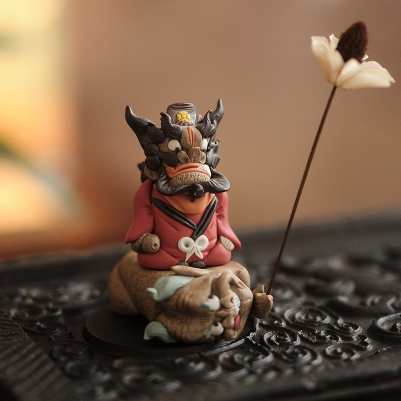 Twelve works of Tianshi Zhongkui tea pet handmade boutique small ornaments creative can raise incense burner town house tea table tea play