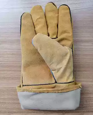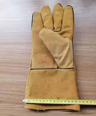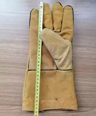 Long electric welding gloves yellow cowhide double total length 32cm finger wear-resistant full 100 double discount 300 double bag