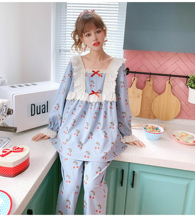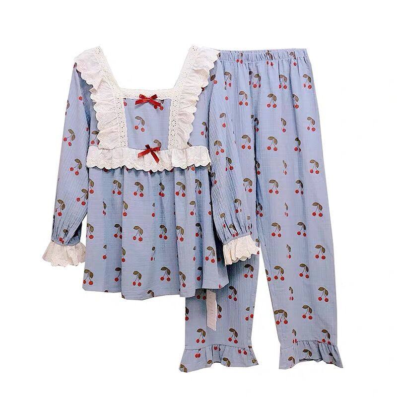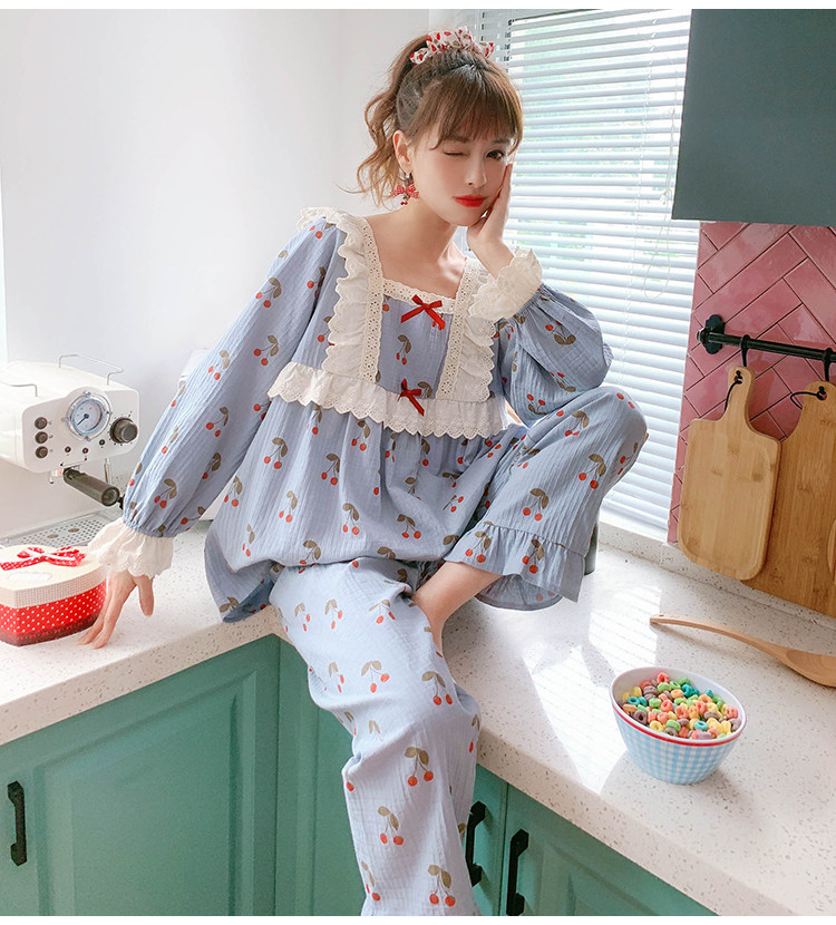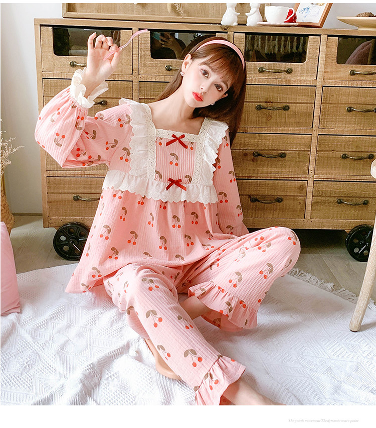 Little fairy cotton pajamas women's long-sleeved autumn and winter Korean version cute cherry loose princess cotton homewear suit