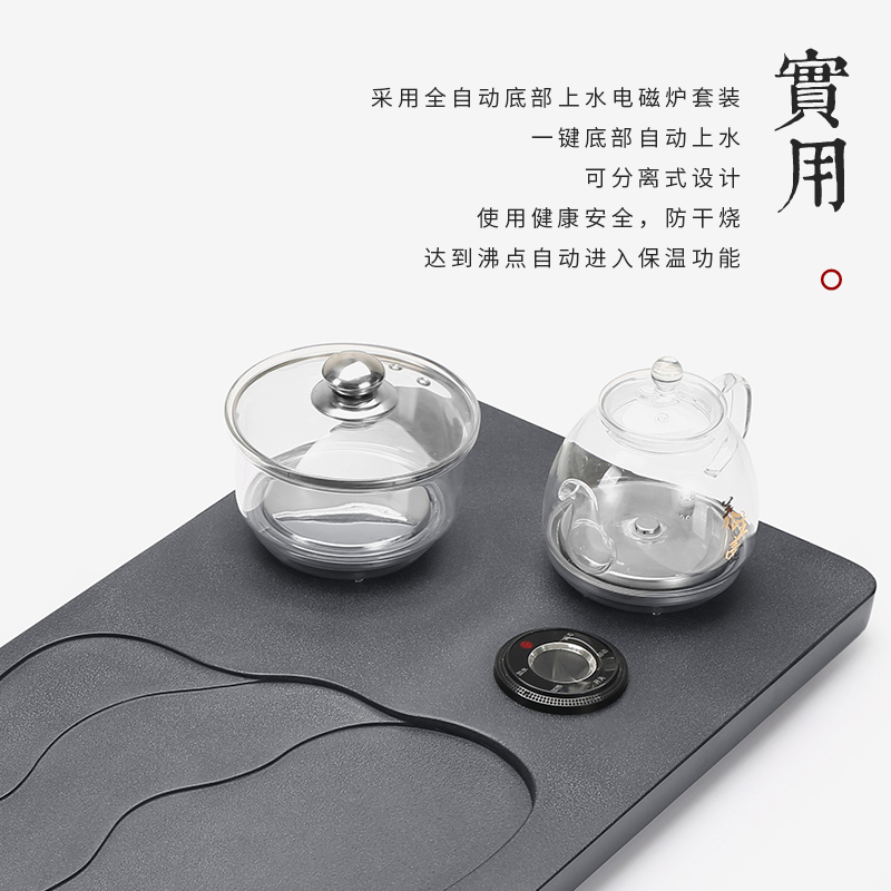 Wu Jinshi tea tray Kung Fu tea set Household living room with electromagnetic stove integrated tea table automatic kettle sea