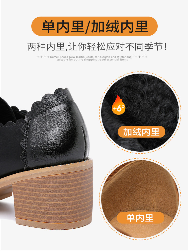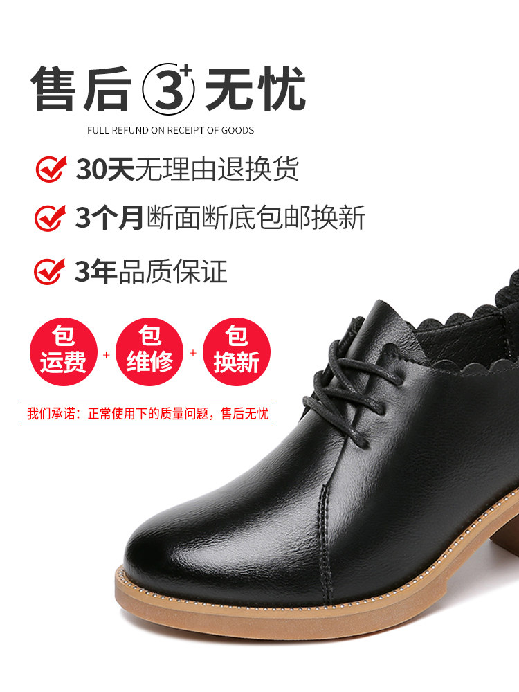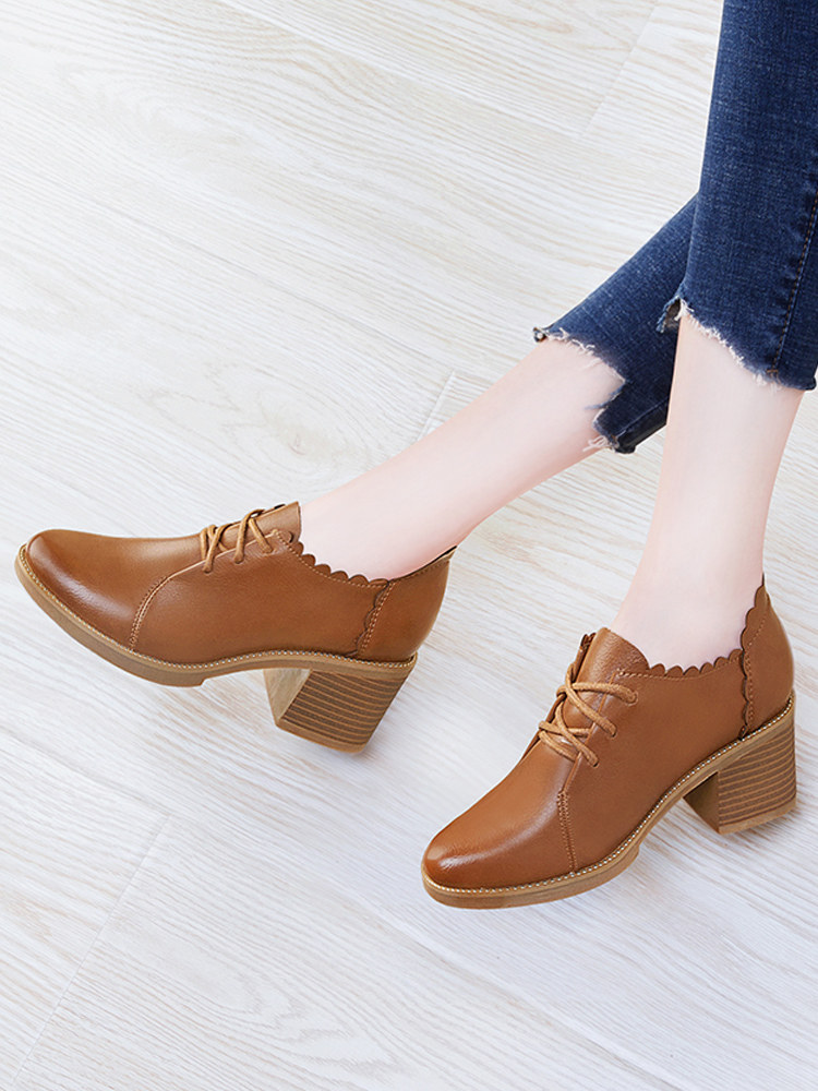 Thick heel leather shoes women's spring and autumn 2021 new mid-heel brown lace-up high-heeled shoes soft leather comfortable mother deep mouth single shoes