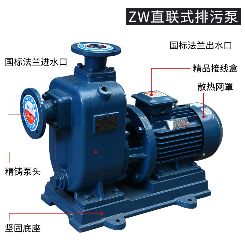 ZW straight-connected self-priming pump without clogged discharge pump three-phase centrifugal pump high-lift large flow sewage water pump 380V