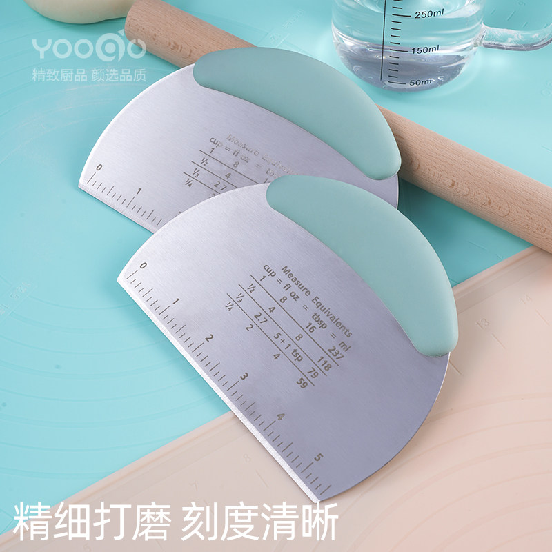 yoogo stainless steel cutting knife Household silicone scraper scraper with scale flour steamed bun cutter baking tool