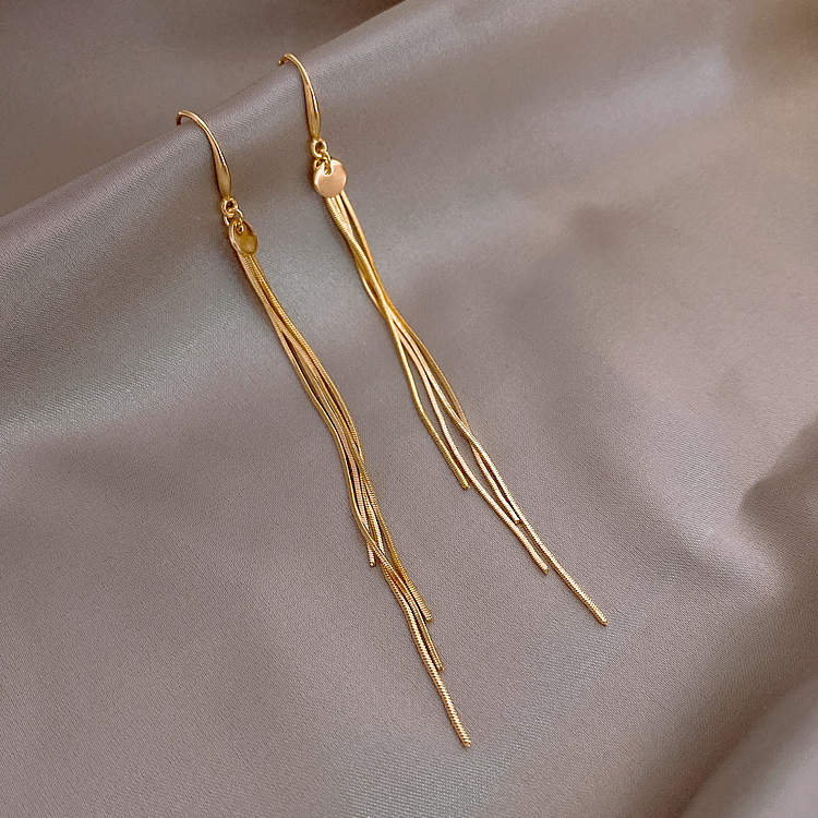 Korean temperament super fairy earrings female simple multi-layer metal tassel earrings personality wild face thin ear hook earrings earrings