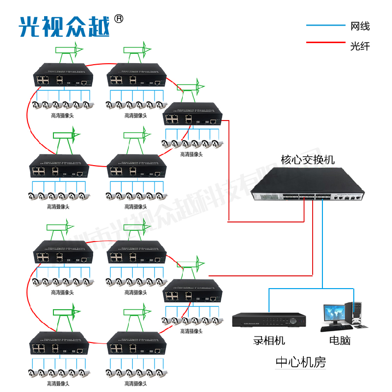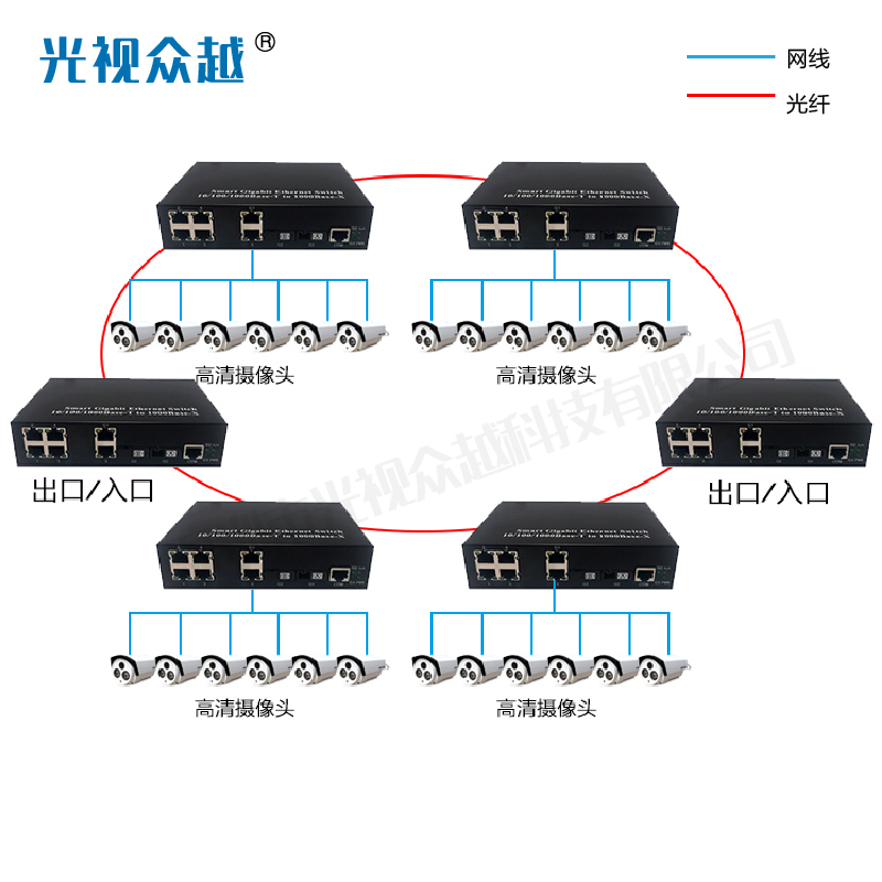 Ring network Gigabit 2 optical 6 electrical single mode single fiber switch