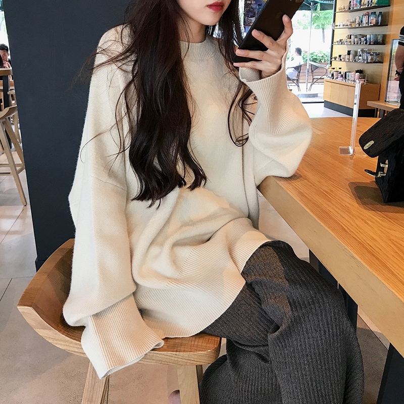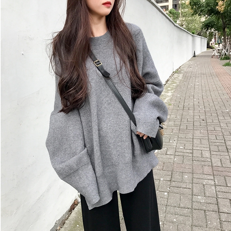 Spring and autumn 2020 new women's loose lazy round neck long sleeve pullover pink sweater women's autumn and winter Korean version knitwear