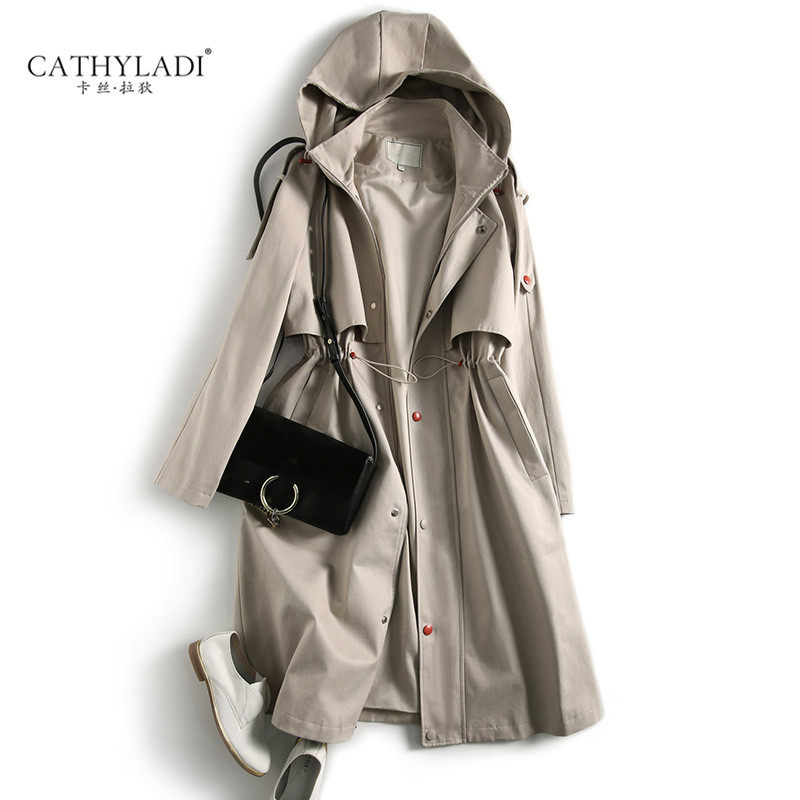 CATHYLADI windbreaker women's long version of the thin waist Parker 2021 new spring and autumn casual straight coat