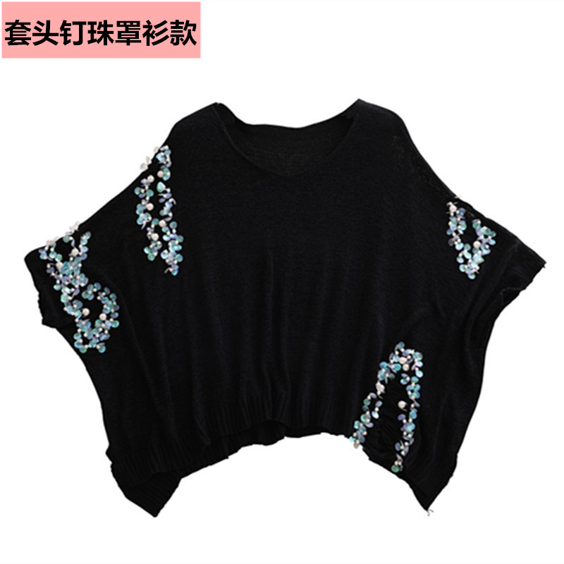 Knitted cardigan women's summer Korean style pullover thin top with bat sweater loose shawl long-sleeved short blouse