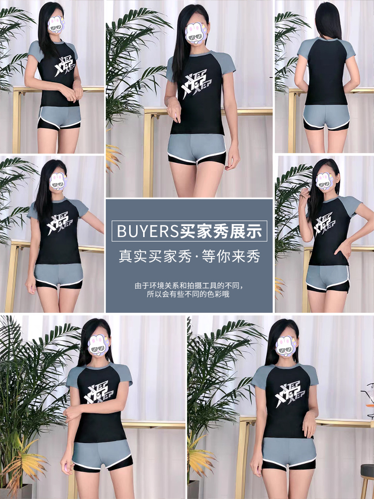 Black and grey (short-sleeved) 13271 Black and grey two-piece suit (swimsuit grey PU swimming cap) Black and grey three-piece suit (swimsuit swimming cap black goggles) Black and grey three-piece suit (swimsuit grey