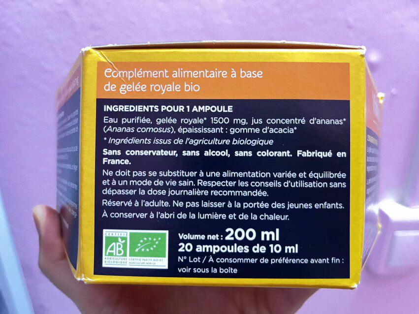 Spot France Concentrate Vitaflor Organic Royal Jelly Nouri to strengthen the liver and strengthen the fitness 20x10ml