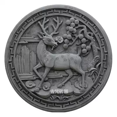 Ancient Fan Brick Carving Antique Brick Blue Brick Chinese Shadow Wall Center Round Decoration Hanging Song Deer Wall Brick Carving