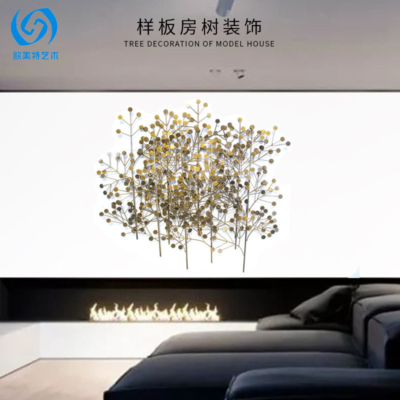 Wafer Leaf Creative Stainless Steel Wall-mounted Sofa Background Wall Hotel Lobby Wall Hung Like Decorative plate Room Tree