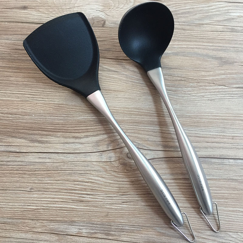 304 stainless steel spatula household kitchen thickened anti-scalding long handle soup spoon frying spoon frying shovel silicone spatula cooking
